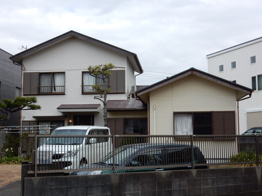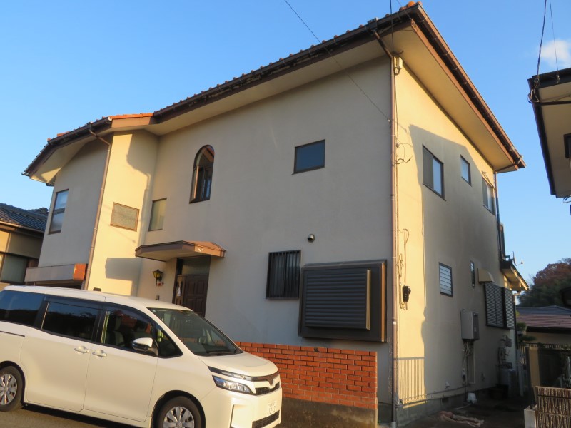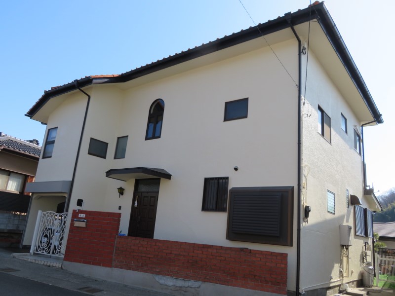 神奈川県茅ケ崎市 外壁:モルタル(ソフトリシン)屋根:スレート 外壁、屋根共に10年前に改修工事済み。今回は外壁を超高耐久遮熱フッ素樹脂塗料で、屋根は高耐久遮熱塗料で施工しました。外壁はメーカー保証です。
