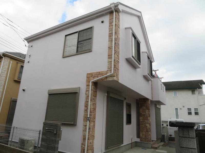 神奈川県横浜市 外壁:モルタル(ソフトリシン)、屋根:ガルバリウム鋼板葺き(カバー工法) 今回は、外壁を超高耐久遮熱フッ素樹脂塗料で、屋根はガルバリウム鋼板葺き(カバー工法)で仕上げました。外壁、屋根共にメーカー保証です。