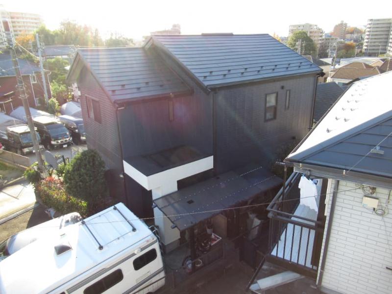 神奈川県横浜市 外壁:サイディングボード 屋根:スレート 今回の施工は、外壁一部サイディングボードの張替えをし、外壁塗装は超高耐久遮熱フッ素樹脂塗料で施工しました。屋根は傷みが激しいので、ガルバリウム鋼板(フッ素加工)によるカバー工法で施工しました。外壁、屋根共にメーカー保証です。
