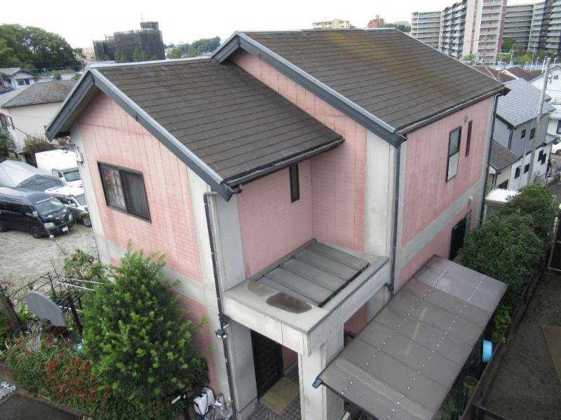 神奈川県横浜市 外壁モルタル(ソフトリシン、ジョリパット、1部サイディングボード)屋根:スレート 今回の施工は、外壁を超高耐久遮熱フッ素樹脂塗料で仕上げました。屋根は、塗装ではなくエコグラーニ(ジンカリウム鋼板)にて、カバー工法で施工しました。外壁、屋根共にメーカー保証です。