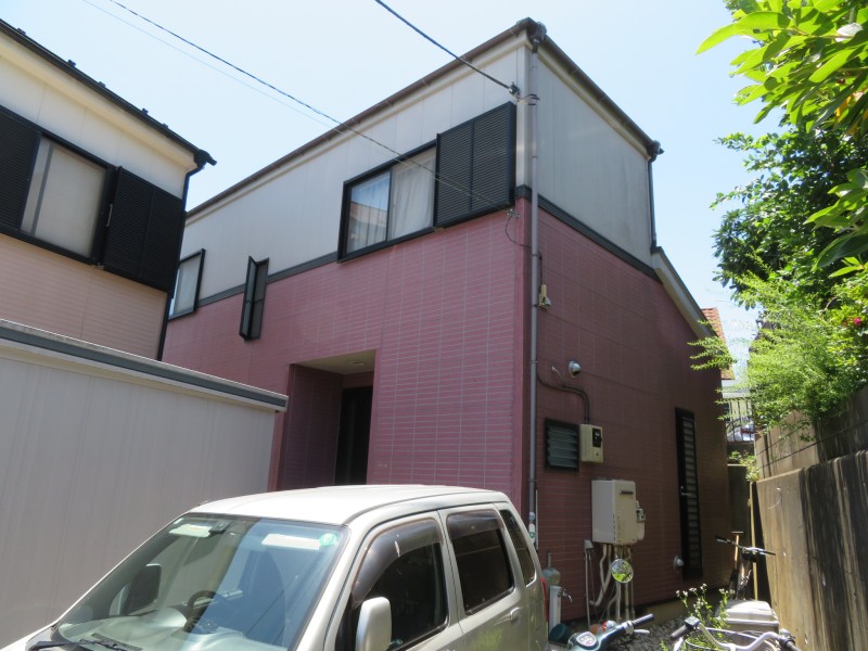 神奈川県横浜市 外壁:窯業系サイディングボード、屋根:コロニアル 今回は、シロアリ駆除工事、BSアンテナ取付工事も兼ねて外壁、屋根塗装を施工しました。外壁は多彩色のサイディングなので、高耐久フッ素樹脂クリヤーで、屋根も高耐久弱溶剤フッ素樹脂の施工です。
